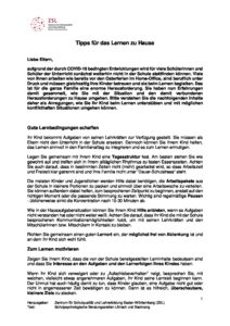 Elterninformation Lernen zu Hause
